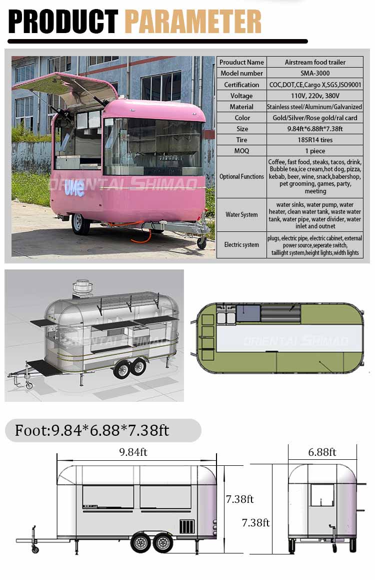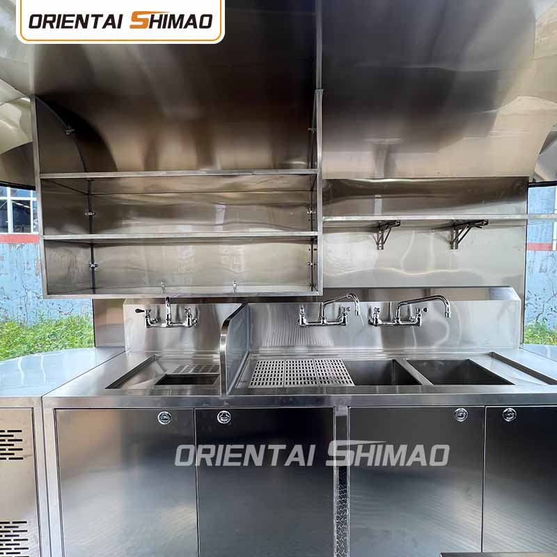 Pour le matériau principal, nous avons choisi l'acier inoxydable 304 de haute qualité, connu pour son excellente résistance à la corrosion et son excellente durabilité, et peut maintenir des performances stables dans diverses conditions environnementales, garantissant que nos produits Airstream Food Trailer peuvent conserver leur excellente qualité et fonctionnalité même à long terme et faire face à une variété de défis. L'excellente résistance de l'acier inoxydable 304 à la corrosion, de sorte que le camion ne soit pas facilement affecté par l'oxydation ou la rouille, ce qui prolonge considérablement sa durée de vie. L'excellente résistance à la corrosion de l'acier inoxydable 304 rend les camions moins sensibles à l'oxydation ou à la rouille, prolongeant ainsi considérablement leur durée de vie.