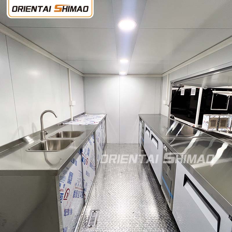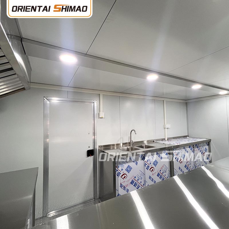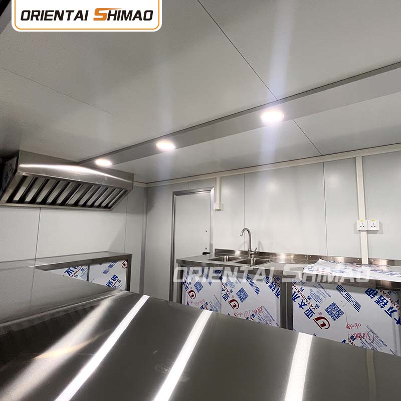Aménagement intérieur : Planification raisonnable de la cuisine, de la salle à manger, de l'espace de rangement et d'autres zones pour assurer une utilisation maximale de l'espace. Dans le même temps, différentes zones fonctionnelles sont mises en place en fonction des besoins de l'entreprise, telles que la zone de production, la zone de chauffage, la zone de vente, etc., pour faciliter le fonctionnement et améliorer l'efficacité opérationnelle.