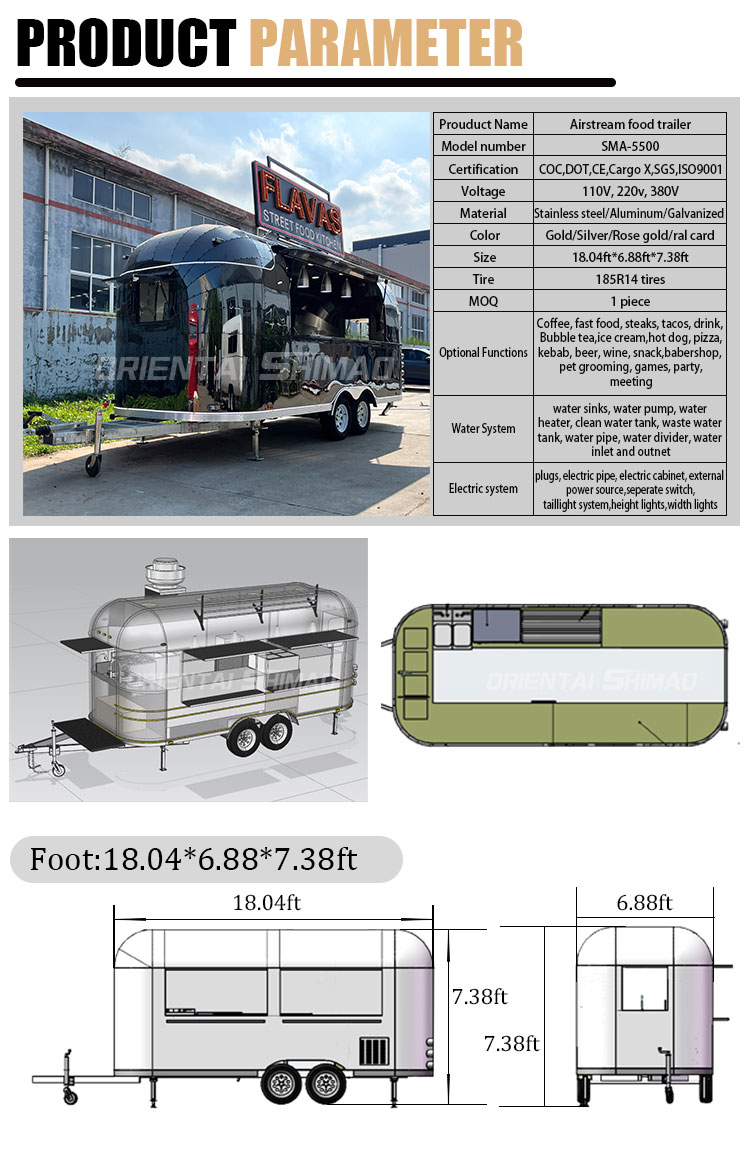 Comme matériau principal, nous avons choisi l'acier inoxydable 304 de haute qualité, connu pour son excellente résistance à la corrosion et son excellente durabilité, et peut maintenir des performances stables dans diverses conditions environnementales, garantissant que nos produits de remorques de concession pour festivals de musique peuvent conserver leur excellente qualité et fonctionnalité même à long terme et faire face à une variété de défis. L'excellente résistance de l'acier inoxydable 304 à la corrosion, de sorte que la remorque de concession pour les festivals de musique ne soit pas facilement affectée par l'oxydation ou la rouille, ce qui prolonge considérablement sa durée de vie. L'excellente résistance à la corrosion de l'acier inoxydable 304 rend les remorques de concession pour festivals de musique moins sensibles à l'oxydation ou à la rouille, prolongeant ainsi considérablement leur durée de vie.