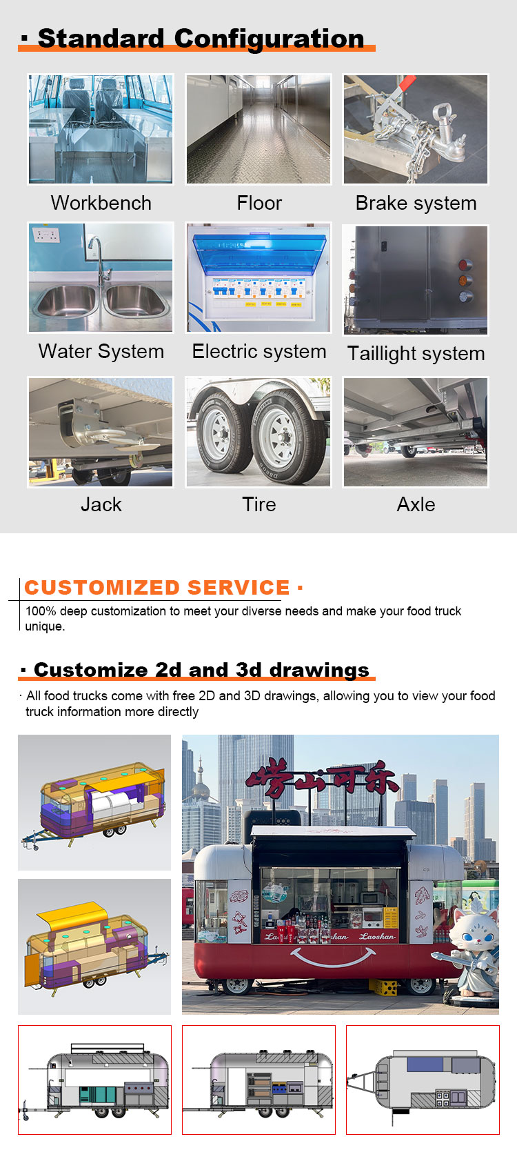Remorque alimentaire camion de nourriture roulant cuisine Mobile restauration rue nourriture remorque Concept camion de nourriture