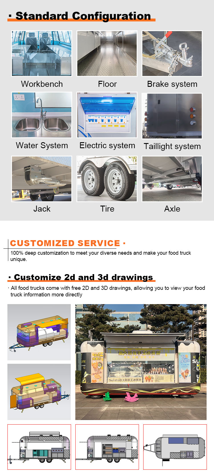 Remorque alimentaire camion de nourriture roulant cuisine Mobile restauration rue nourriture remorque Concept camion de nourriture