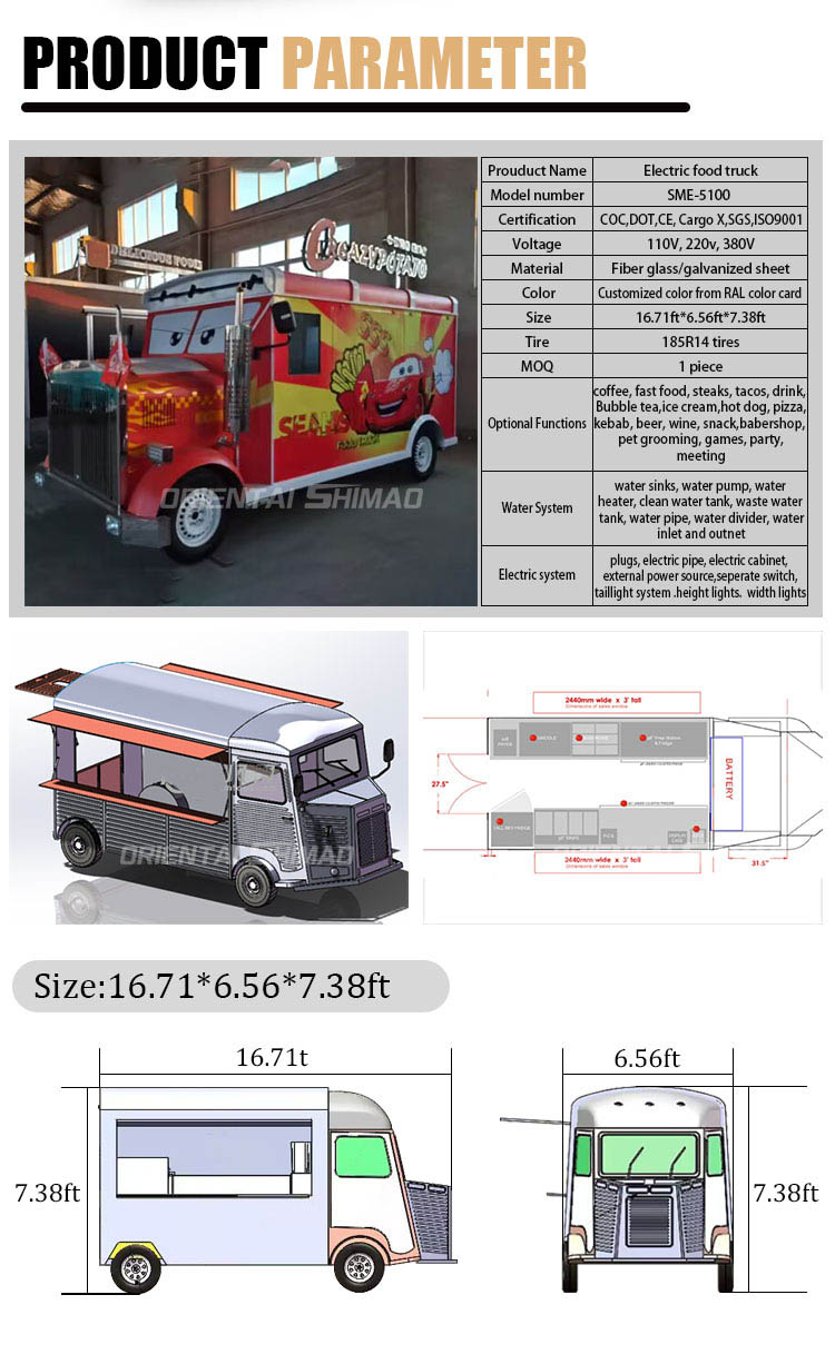 2. Le camion de restauration électrique à chaud peut être avec une conception personnalisée spéciale.