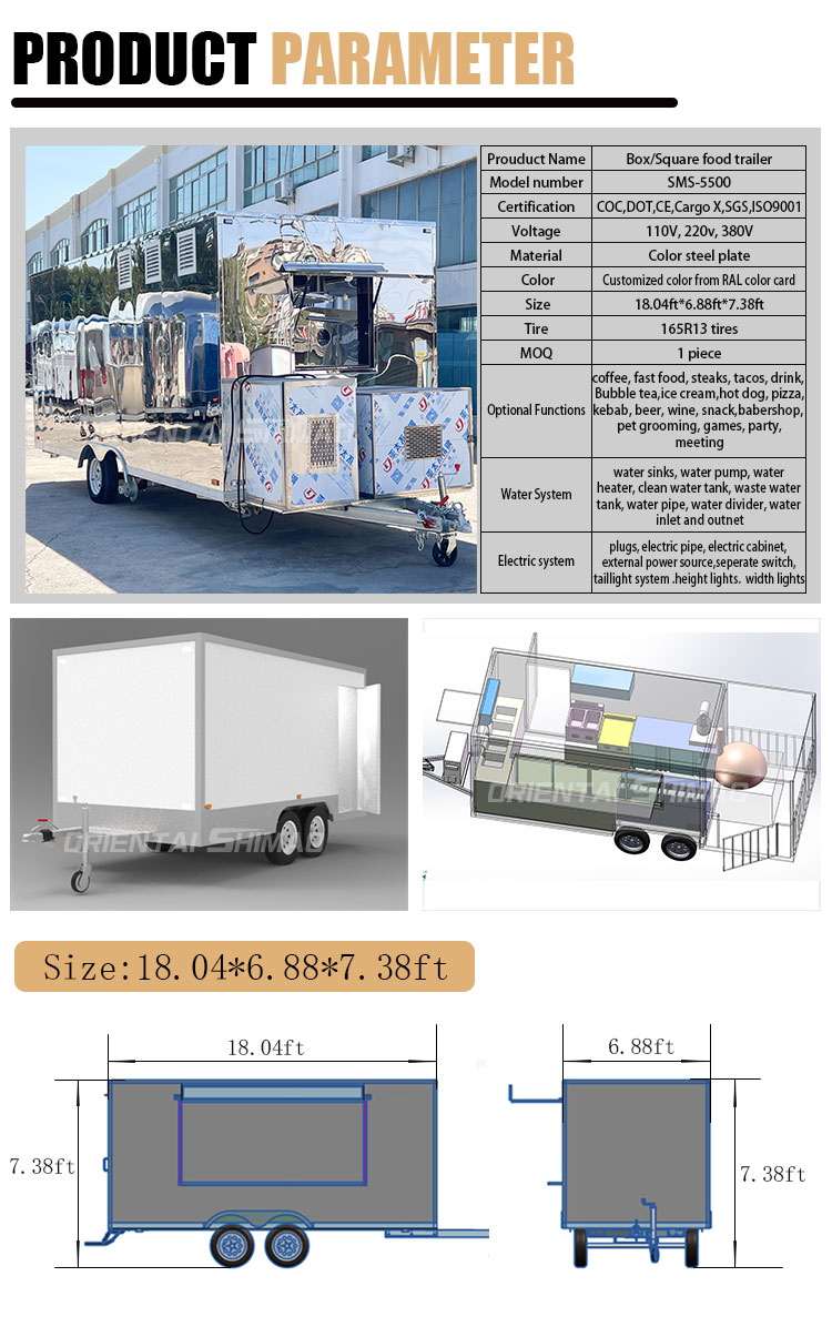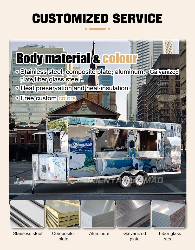 Pour le matériau principal, nous avons choisi l'acier inoxydable 304 de haute qualité, connu pour son excellente résistance à la corrosion et son excellente durabilité, et peut maintenir des performances stables dans diverses conditions environnementales, garantissant que nos produits Food Caravans peuvent conserver leur excellente qualité et fonctionnalité même à long terme et faire face à une variété de défis. L'excellente résistance de l'acier inoxydable 304 à la corrosion, de sorte que le camion ne soit pas facilement affecté par l'oxydation ou la rouille, ce qui prolonge considérablement sa durée de vie. L'excellente résistance à la corrosion de l'acier inoxydable 304 rend les camions moins sensibles à l'oxydation ou à la rouille, prolongeant ainsi considérablement leur durée de vie.