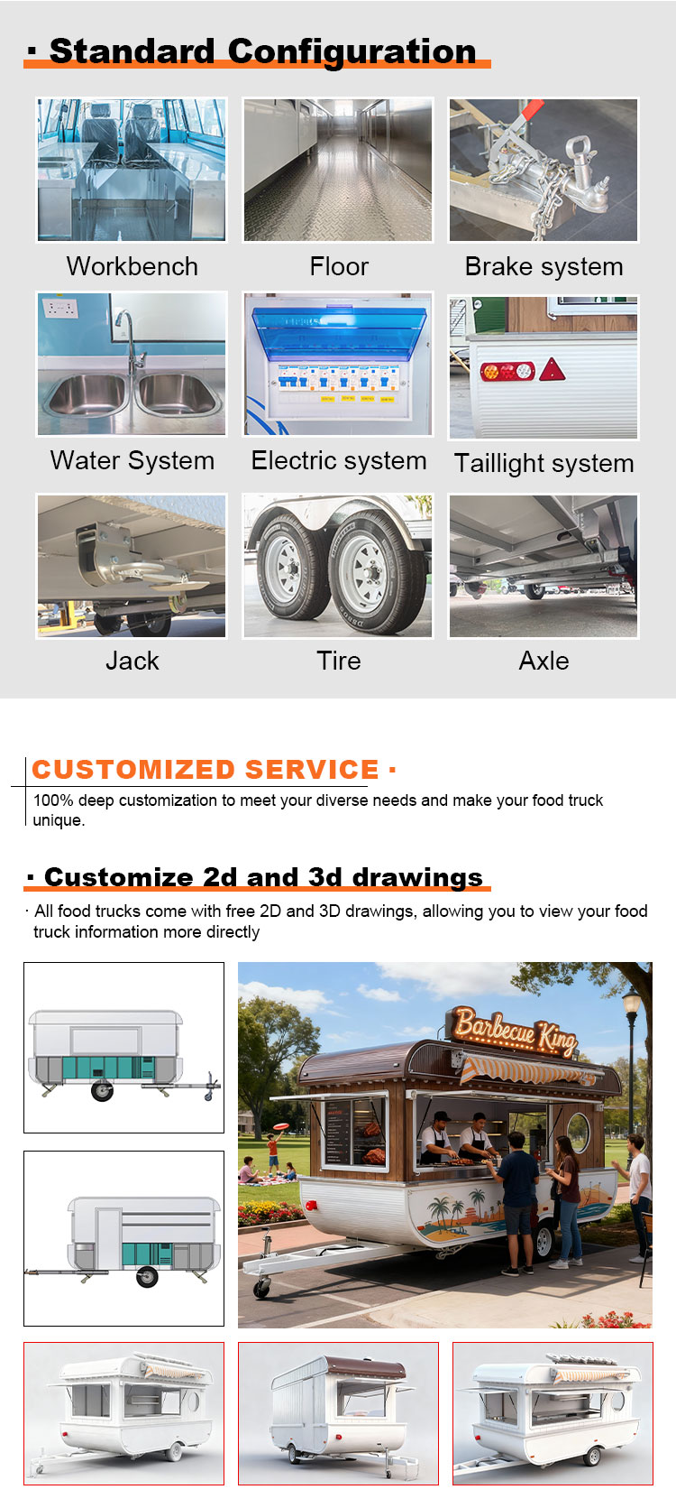 Comme matériau principal, nous avons choisi l'acier inoxydable 304 de haute qualité, connu pour son excellente résistance à la corrosion et son excellente durabilité, et peut maintenir des performances stables dans diverses conditions environnementales, garantissant que nos produits de remorques de restauration peuvent conserver leur excellente qualité et fonctionnalité même à long terme et faire face à une variété de défis. L'excellente résistance de l'acier inoxydable 304 à la corrosion, de sorte que le camion ne soit pas facilement affecté par l'oxydation ou la rouille, ce qui prolonge considérablement sa durée de vie. L'excellente résistance à la corrosion de l'acier inoxydable 304 rend les camions moins sensibles à l'oxydation ou à la rouille, prolongeant ainsi considérablement leur durée de vie.