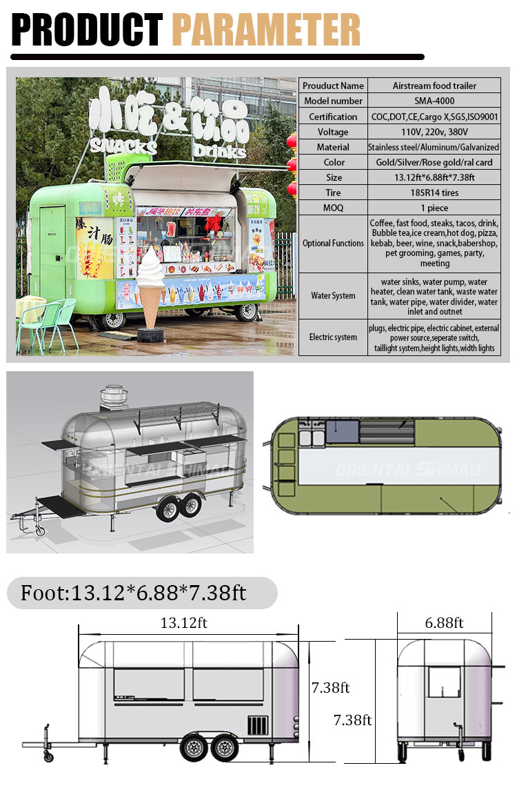 Nous pouvons proposer une remorque alimentaire avec des certifications de cuisine complètes : DOT, CE, SGS, SCI, ISO, COC,