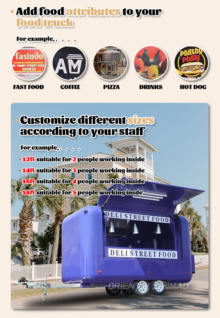 Si vous avez besoin d'une bande-annonce de fourgon alimentaire peut démarrer des affaires à tout moment, n'importe où, alors cette voiture vous convient, mais non seulement de la longueur de 36 pieds peut non seulement accueillir tout l'équipement en même temps peut également accueillir suffisamment de tables et de chaises utilisées pour solliciter les clients à venir, car chaque client peut vous permettre rapidement après avoir quitté la sollicitation du prochain client, l'efficacité est très élevée! Vous pouvez également être utilisé pour donner un jeu complet à votre imagination, après tout, 36 pieds peuvent faire beaucoup d'affaires, ne pas vous inquiéter du tout, rentables, que l'entreprise traditionnelle, vous pouvez toujours emmener votre restaurant dans une variété d'activités animées, je crois que votre voiture, peu importe où il s'agit d'un paysage brillant!