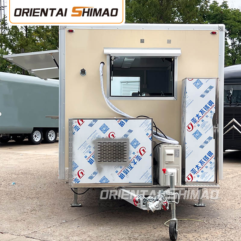 Lorsque l'on parle de la qualité supérieure de la remorque alimentaire prête à franchir Oriental Shimao, il est important de mentionner la combinaison ingénieuse et soigneusement sélectionnée de matériaux qui non seulement confèrent au chariot sa durabilité unique, mais améliorent également considérablement son aspect pratique et ses normes d'hygiène, garantissant que chaque client puisse profiter d'une expérience culinaire sûre et confortable.