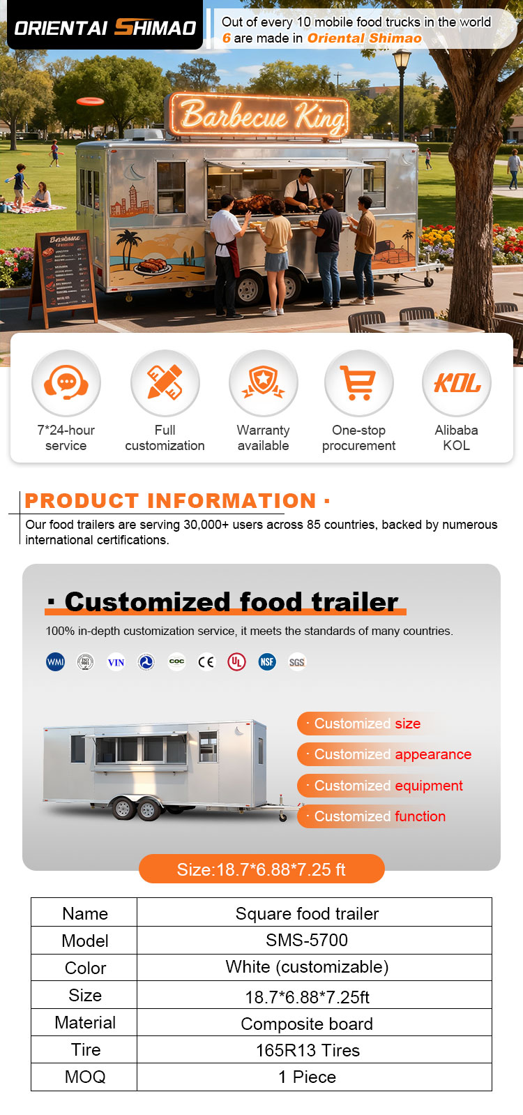 Nous pouvons offrir des certifications de remorques de camions de nourriture mobiles : DOT, CE, SGS, SCI, ISO, COC,