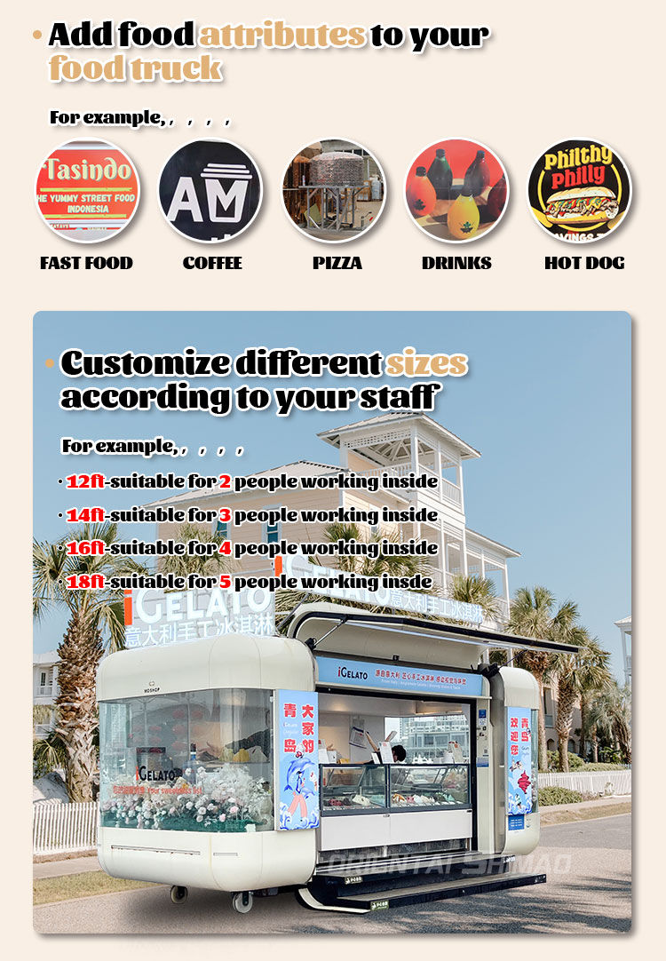 Modélisation et style : la modélisation de l'apparence et le style du food truck sont un facteur important pour attirer les clients. Il peut être personnalisé en fonction de l'image de marque des clients, des caractéristiques commerciales ou des préférences personnelles, telles qu'un design épuré, un style rétro, une simplicité moderne, etc.
