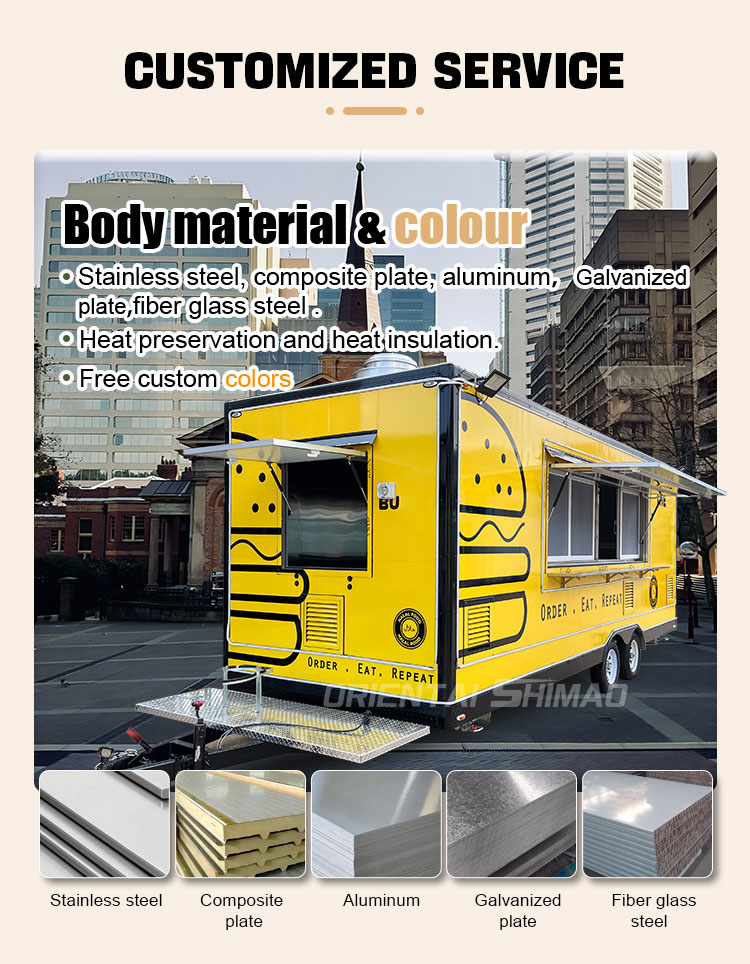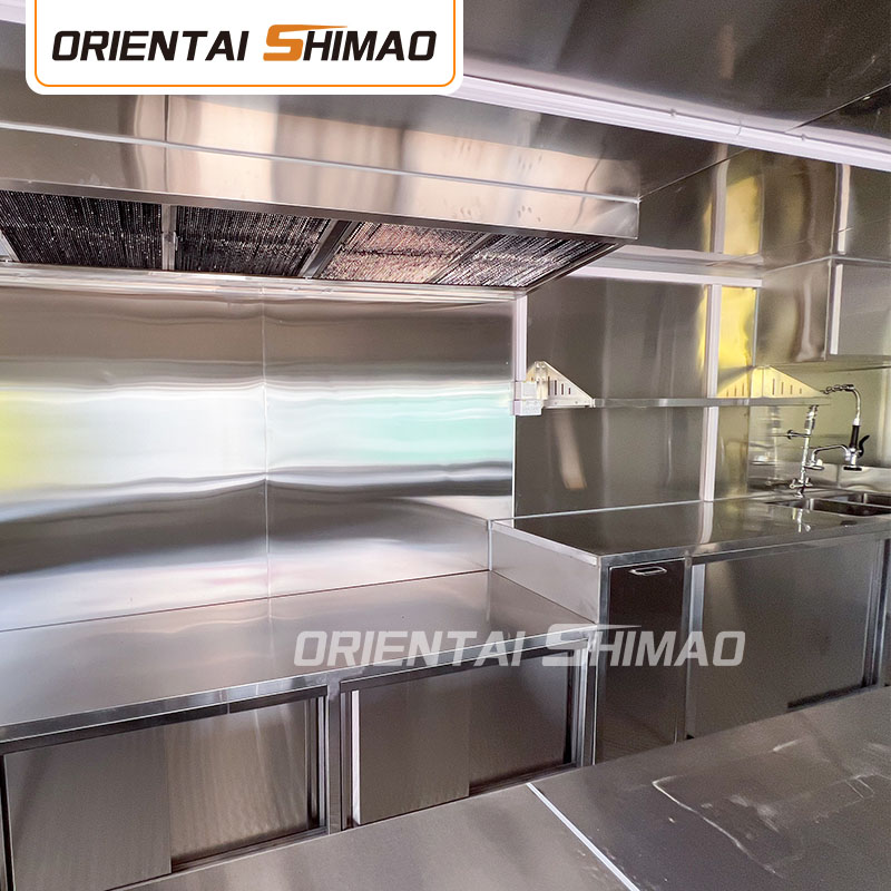 Acier inoxydable : L’acier inoxydable est également l’un des choix courants pour les panneaux extérieurs, en particulier l’acier inoxydable 304 de qualité alimentaire. L'acier inoxydable est résistant à la corrosion, à la chaleur et facile à nettoyer, ce qui le rend adapté à une utilisation dans les cuisines, les comptoirs et autres zones en contact avec les aliments des food trucks. Dans le même temps, la beauté de l’acier inoxydable peut également améliorer la texture globale du food truck.