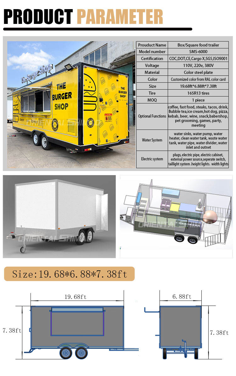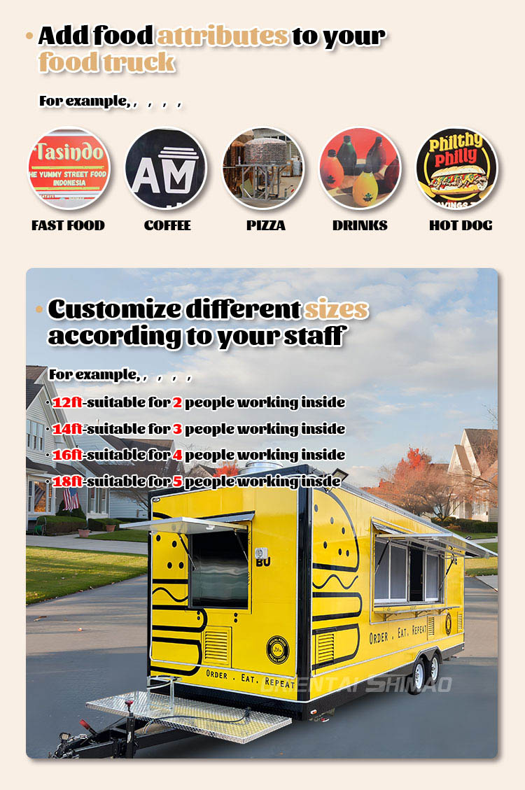 Il vous suffit de fournir les informations sur le produit dont vous avez besoin, notre directeur commercial senior vous recommandera les produits, puis dès le début de la commande, notre équipe de conception professionnelle pourra vous donner le design qui appartient à votre projet, puis commencer la production de votre food truck, vous pouvez laisser libre cours à votre imagination pour personnaliser le produit, de l'intérieur vers l'extérieur, vous pouvez également acheter l'équipement nécessaire de notre côté de votre entreprise, vous évitant ainsi les problèmes d'achat et de sélection, la production de l'ensemble, nous vous donnerons l'établissement De votre équipe de service, tout problème avec nous à tout moment. Nous mettrons en place une équipe de service pour vous, et vous pourrez communiquer avec nous à tout moment pour toute question, après la production, nous vous enverrons une vidéo pour votre inspection, ou vous pourrez venir à l'usine pour inspecter les marchandises, nous vous invitons à venir !