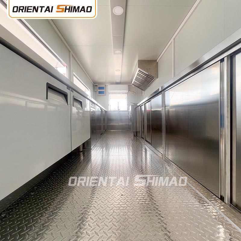 Aménagement intérieur : Planification raisonnable de la cuisine, de la salle à manger, de l'espace de rangement et d'autres zones pour assurer une utilisation maximale de l'espace. Dans le même temps, différentes zones fonctionnelles sont mises en place en fonction des besoins de l'entreprise, telles que la zone de production, la zone de chauffage, la zone de vente, etc., pour faciliter le fonctionnement et améliorer l'efficacité opérationnelle.