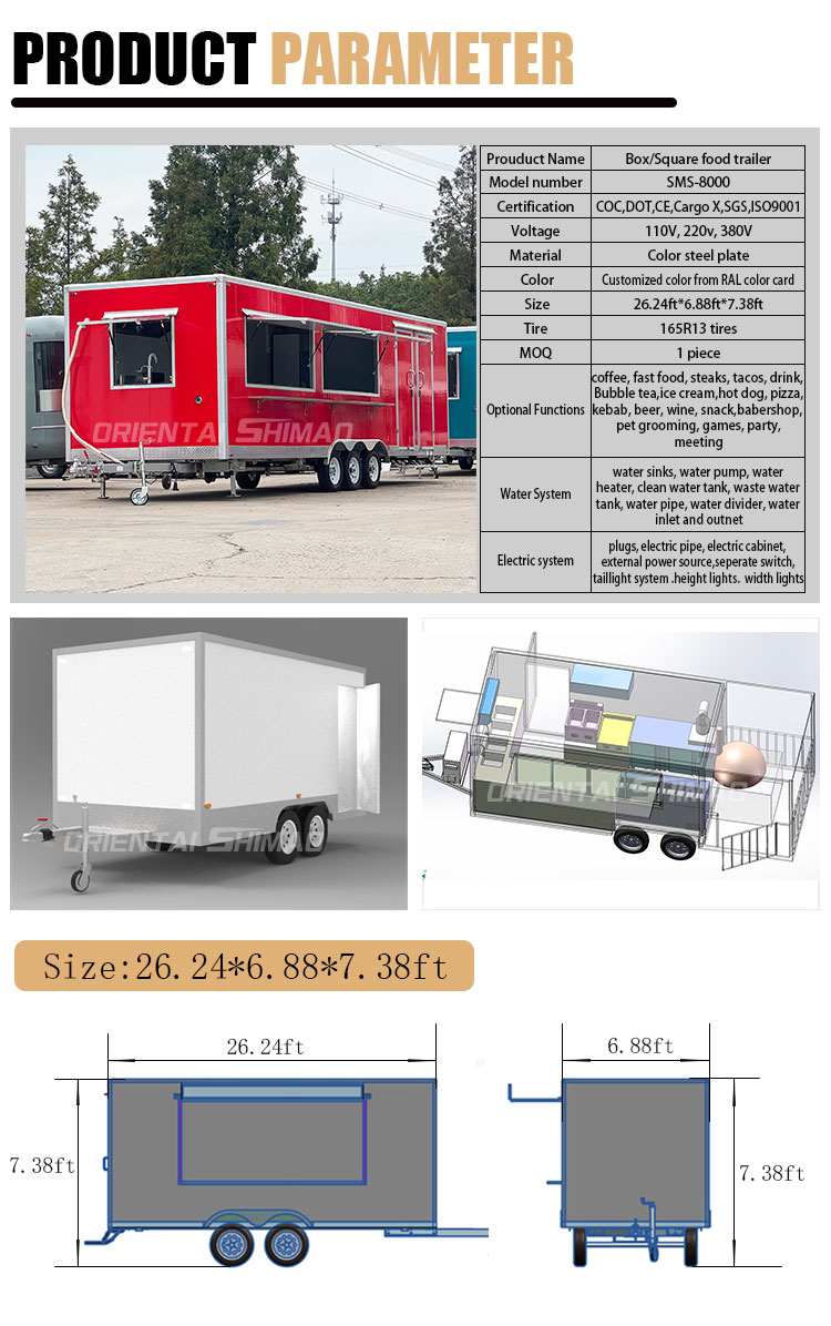 Nous pouvons proposer des chariots de nourriture mobiles à vendre. Certifications : DOT, CE, SGS, SCI, ISO, COC,